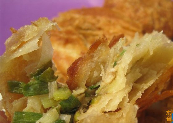酥儿饼是富安的一种传统茶点。据说明代就有了,扬名却在清乾隆年间。相传乾隆皇帝下江南时,品尝后赞不绝口,一时酥儿饼美名远扬,成了富安人的骄傲。酥儿饼是以面粉为主料,揉成面团以后再包入赤豆馅,最后经油煎而成。因为酥儿饼从里到外层层起酥,乍看活像一朵微开的金菊,故又叫“千层酥”。酥儿饼有用赤豆沙、桂花和蔗糖调制的甜馅,也有用鲜肉、油渣、葱花、盐和味精调制的咸鲜馅,具有入口酥松香脆、油而不腻的特点。